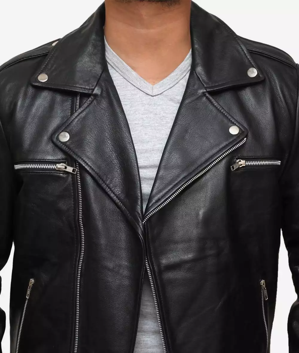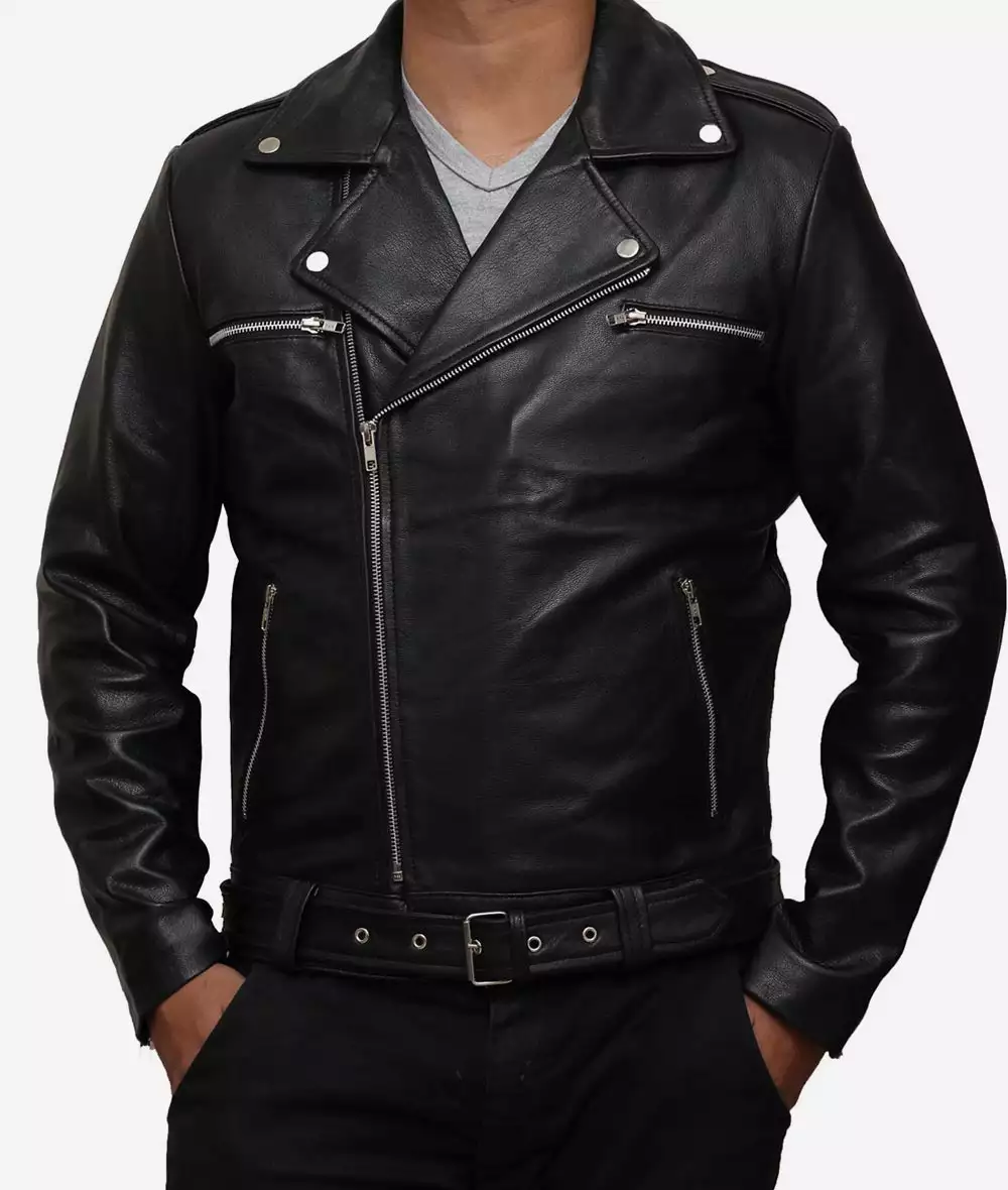 Men’s Black Asymmetrical Belted Moto Leather Jacket