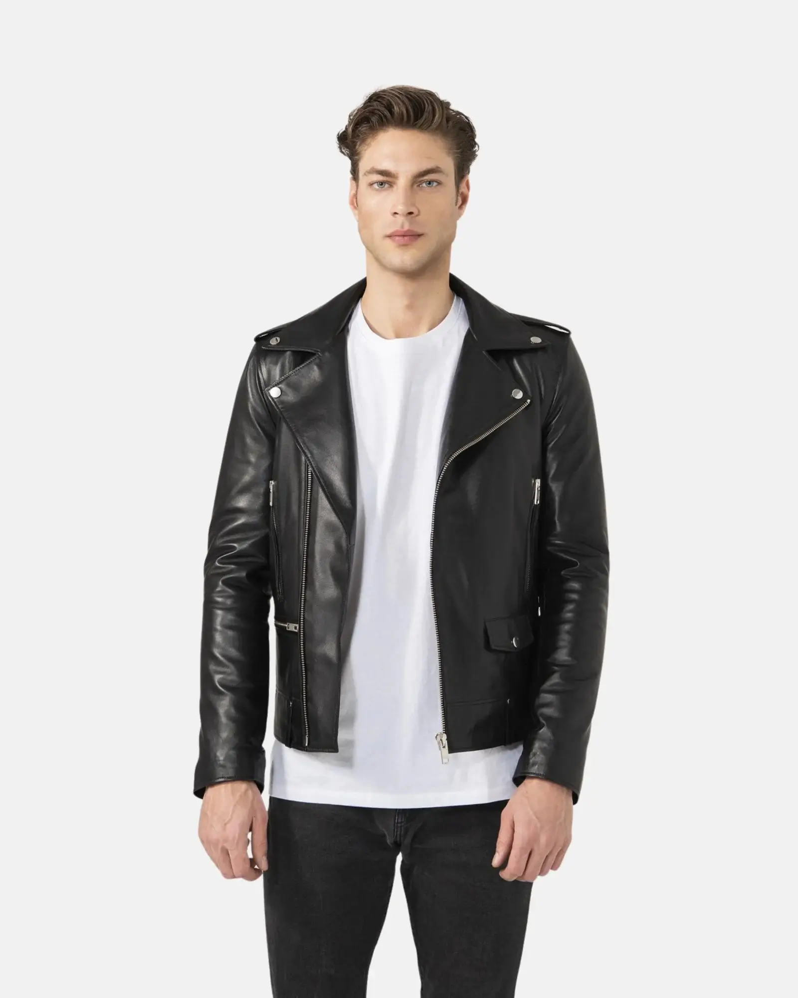 Whether paired with jeans and boots for a traditional biker look or styled casually for urban wear, the Men’s Black Biker Leather Jacket delivers confidence, durability, and timeless appeal. It’s a must-have piece for men who appreciate classic craftsmanship and iconic biker fashion.