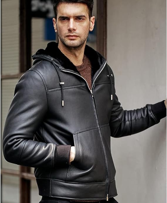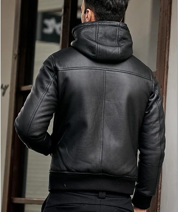 Men's Black Hooded Leather Jacket