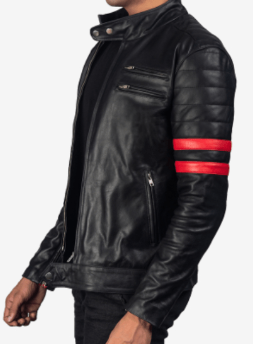 Men’s Black Leather Jacket With Red Stripe