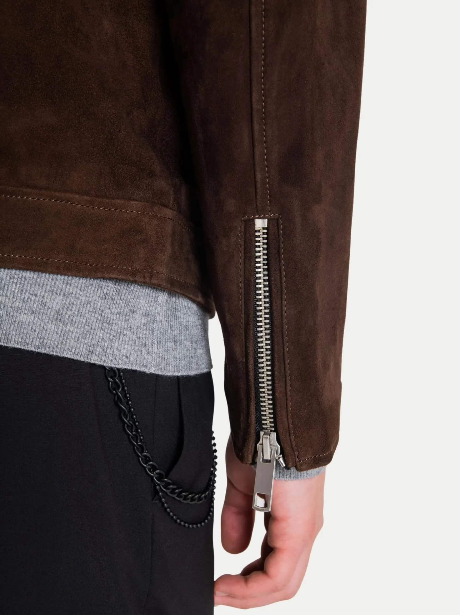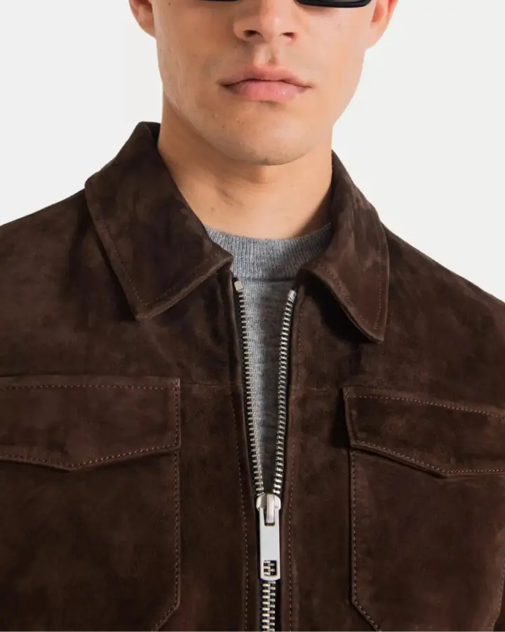 Designed with the classic trucker silhouette in mind, this jacket features structured shoulders, a pointed collar, and multiple front pockets for practical storage. The tailored fit enhances your masculine profile while allowing comfortable movement, making it ideal for daily wear, travel, or evening outings. Its soft suede texture adds depth and character to any outfit, creating a polished yet effortlessly stylish look.