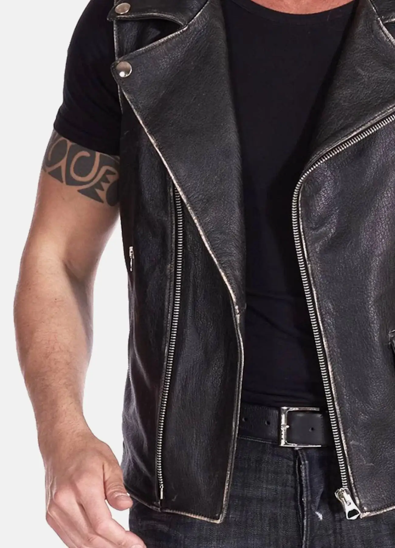 Whether worn while riding or styled casually with jeans and boots, the Men’s Distressed Black Leather Biker Vest delivers bold attitude, rugged charm, and reliable performance. It’s a must-have for men who value authentic biker style and high-quality leather craftsmanship.