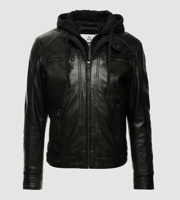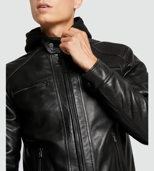 Whether paired with jeans and boots for a classic biker look or styled with casual outfits for daily wear, the Men’s Leo Black Hooded Biker Leather Jacket delivers confidence, comfort, and timeless appeal.