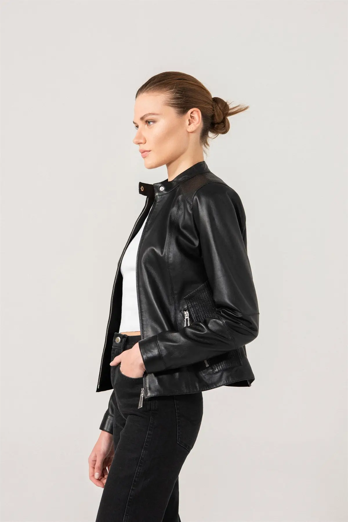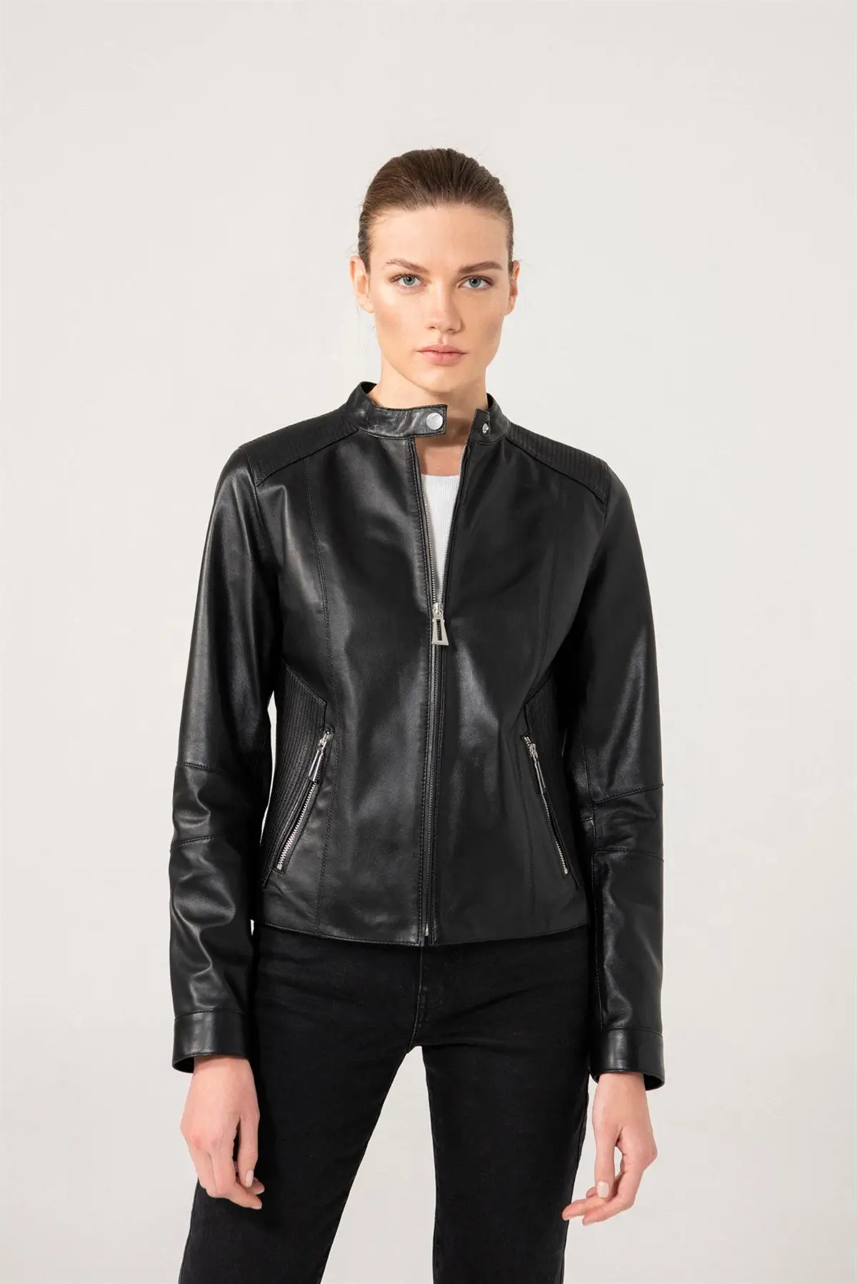 Women's Casual Cafe Racer Leather Jacket