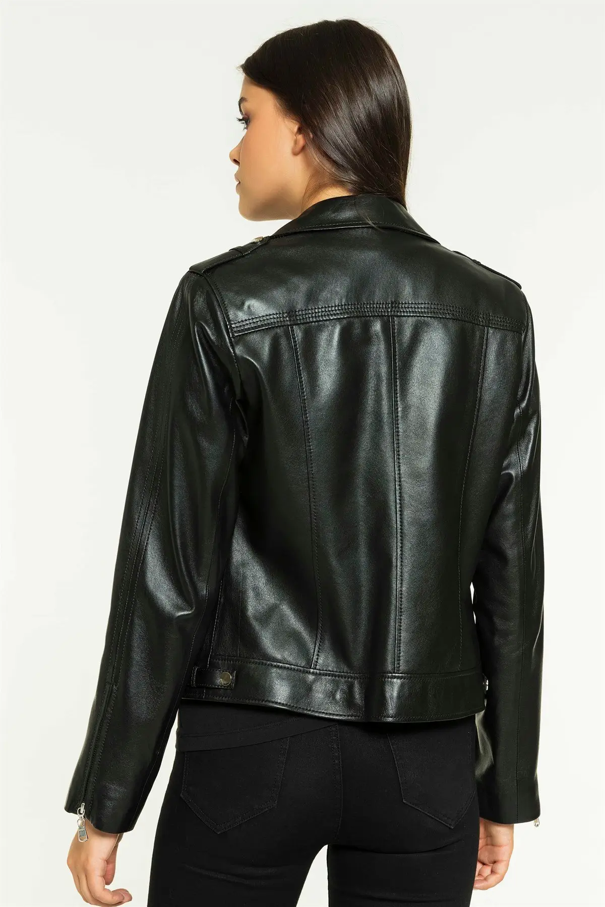 Women's Classic Shiny Black Biker Leather Jacket